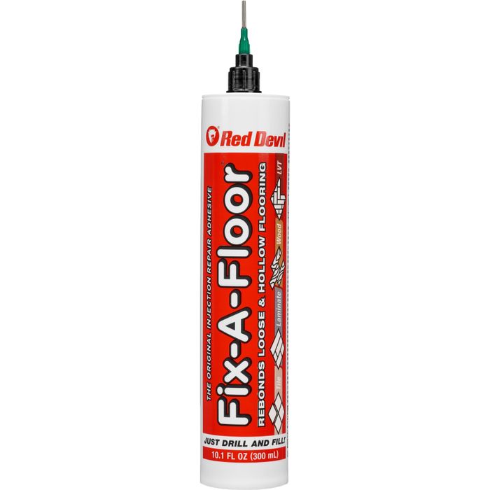 Fix-A-Floor comprises an extra strength repair bonding adhesive suitable for tile, marble, porcelain, stone, wood, LVT, Vinyl Plank & laminate floors including those with Under Floor Heating. The key to Fix-A-Floors effectiveness is its combination of a very powerful and flexible adhesive with elastomeric properties, combined with an extremely low viscosity prior to curing. This means that it will flow under flooring completely filling the void underneath which ensures an end to loose, hollow or creaky floors. Application is made easy with its patented tips offering a perfect finish on any floor type.