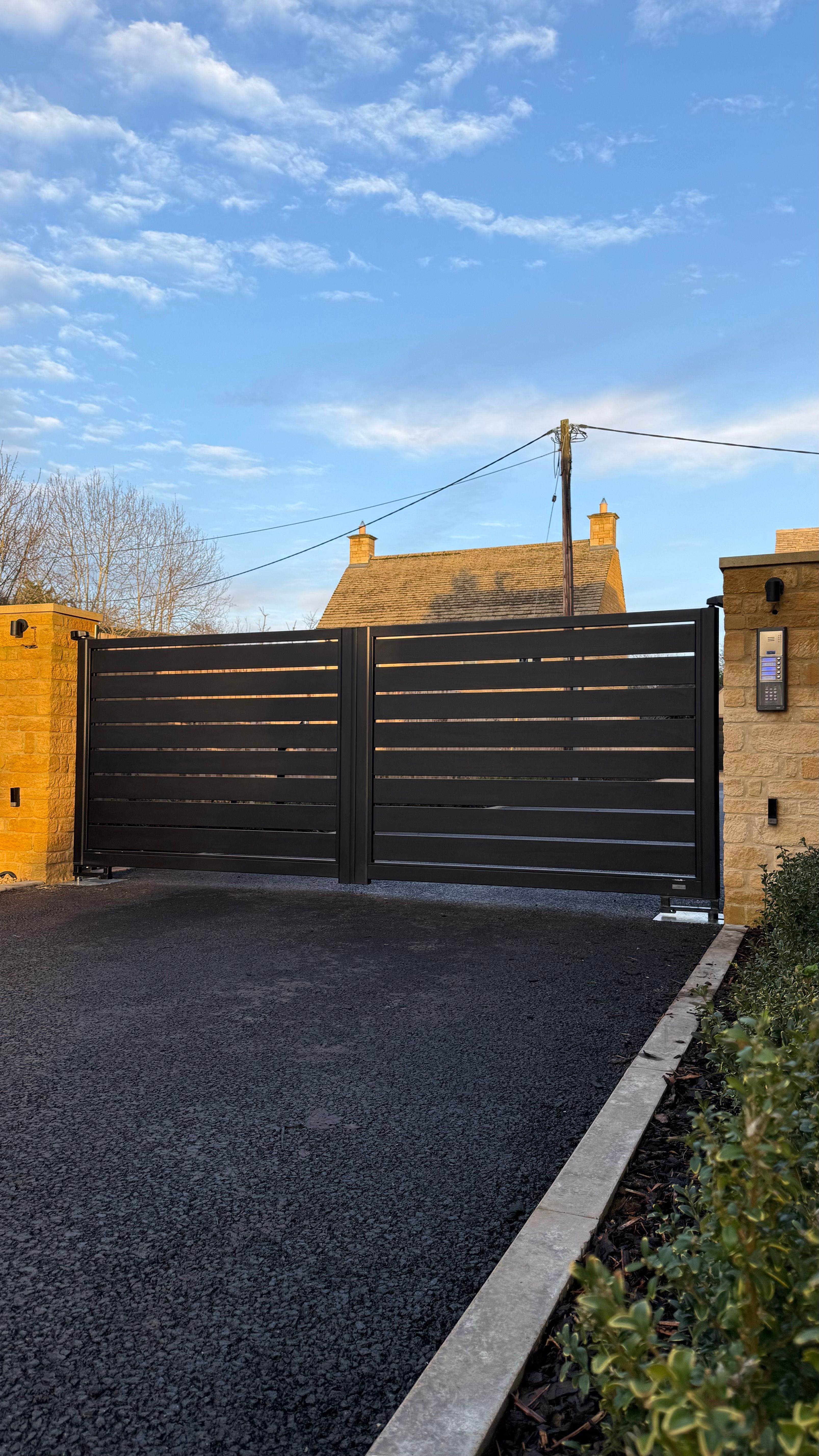 This installation showcases a bespoke aluminium driveway gate system, designed to deliver a perfect balance of modern aesthetics, security, and long-term durability. Finished in a sleek satin black, t ...